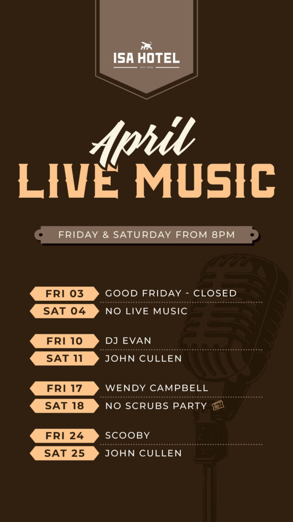 A selection of Mount Isa’s best local acts take the stage on the Deck every Friday and Saturday from 8pm.